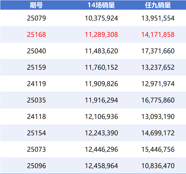 本期兑奖截止日为2026年1月21日,开注本期14场销量为11,场销289,308元,具体排名见下表: